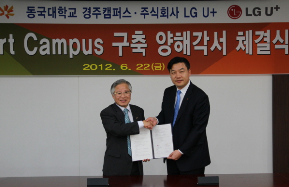 동국대학교 경주캠퍼스(총장 김영종)는 주식회사 엘지유플러스와 지난 22일 오후 5시에 교내 100주년기념관 교무위원 회의실에서 스마트 캠퍼스 구축 협력을 위한 양해각서를 체결했다.