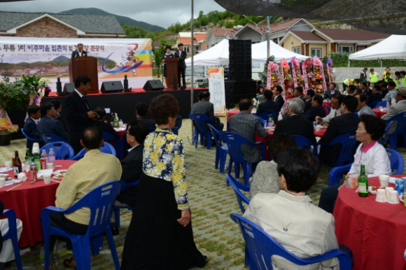 6월 25일(월) 12시30분 안강읍 두류주민 이주단지조성사업으로 추진된 친환경 조성마을『입촌식 및 경로당, 마을회관 준공식』행사를 개최했다.