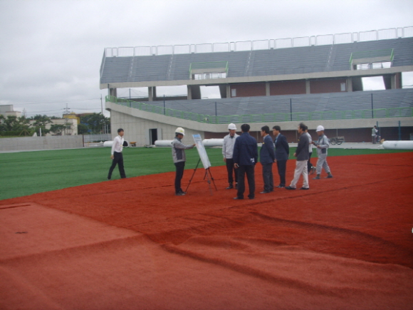 현재 진행되고 있는 마무리공사는 전광판, 조명탑, 음향, 방송시설, 의자설치, 외부광장 조성 등 현재 공정률은 96%이다.