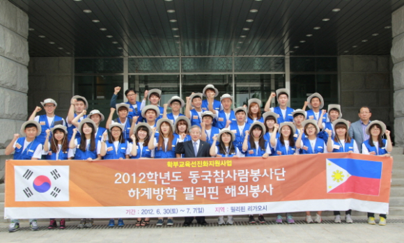 매년 여름방학을 이용한 동국참사람봉사단(단장 박상범)의 필리핀 해외봉사활동은 동국대 경주캠퍼스가 재학생들의 국제 경쟁력과 자아개발, 봉사정신 및 능력을 향상시키고 글로벌 마인드와 인성을 증진시키고자 실시하는 것으로, 올해 6년째를 맞고 있다.
