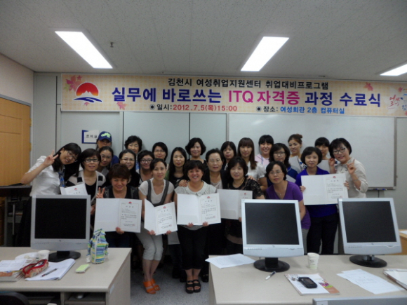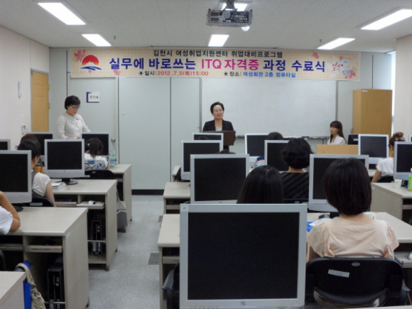 김천시(시장 박보생)에서 운영하는 여성취업지원센터가 취업대비 프로그램으로 4월 16일 개강한 『실무에 바로 쓰는 ITQ 자격증 과정』이 7월 5일 수료식을 가졌다.