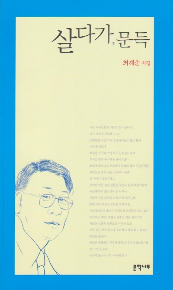두 번째로 소개하는 시집은 문학나무에서 출판한 최해춘 시인의 시집 『살다가, 문득』이다.