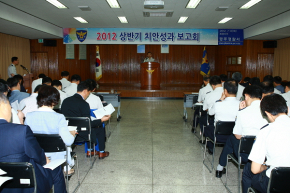 경주경찰서(서장 정식원)는 7월 12일 오전9시 화랑마루에서 각 과 ․ 계장, 파출소장 등 50여명이 참석한 가운데 2012년 상반기 치안성과 보고회를 개최했다.