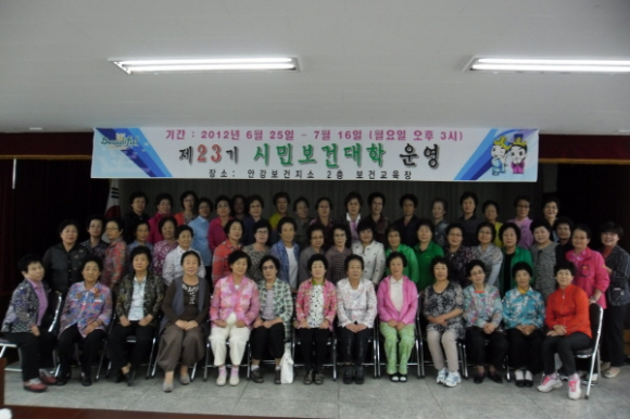 경주시 보건소에서는 인구의 고령화 추세와 생활양식변화에 따른 건강위험 요인의 증가로 체계적이고 전문적인 건강교육으로 건강생활실천을 위한 다양한 정보를 제공하기 위해 지난 6월 25일부터 7월 16일까지 안강보건지소 2층 보건교육장에서 운영하여 7월 16일 67명이 수료식을 가졌다.