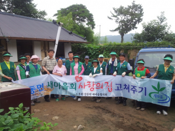 강동면 새마을 협의회는 이웃사랑의 몸소 실천과 지속적인 봉사활동으로 어렵게 살고 있는 노인 및 주민들에게 늘 위로와 격려를 아끼지 않고 있으며, 특히 이번 집 고쳐주기 봉사활동으로 김옥국 할머니께서는 한층 깨끗한 환경에서 거주할 수 있다며 매우 기뻐했다.