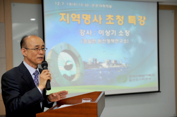 한국수력원자력(주) 월성원자력본부(본부장 이청구)는 18일 오전 10시30분 본관 대회의실에서 이상기 경주핵안전연대 공동대표를 초청, ‘원전 신뢰성 회복방안’이란 주제로 명사초청 강연회를 열었다.