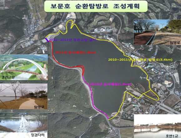 보문 호반길 조성사업은 2010년부터 2014년까지 5년간에 걸쳐 경북도와 경주시의 특별예산을 지원받아 시행되고 있으며, 총연장 8km인 호반길은 지난해까지 5.4km 구간의 조성을 완료했고, 금년에는 1.3km를 조성하며 잔여 1.3km 및 공중화장실을 2014년까지 조성할 계획이다.
