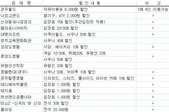 할인쿠폰은 경상북도관광공사 홈페이지(www.ktd.co.kr)에서 7월 26일부터 다운로드 가능하다.