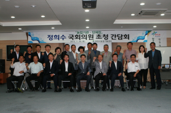 정희수 국회의원은 “바쁜 영농철에 농업기관과 농업인 단체장들이 모여 소중한 의견을 모으고 화합을 위하여 간담회에 참석한 점에 대해 감사의 뜻을 전하고, 오늘 제시된 의견을 적극 검토하여 국정에 반영할 수 있도록 최선을 다하겠다.”고 했다. |