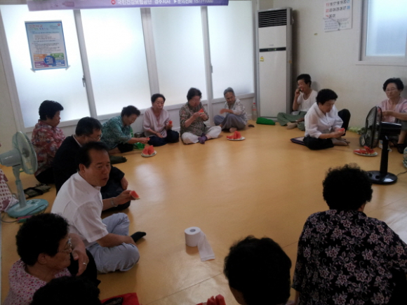 이날 이종근시의원님도 함께 경로당을 방문했으며 어르신들께 준비해간 시원한 수박을 전달하고, 관내 주민센터건립 등 시정전반에 관해 홍보했다. 또한 최근연일 계속되는 폭염에 대비하여 한낮 외출을 자제하고 물을 많이 마시는 등 무더위 건강관리에 주의할 것과 쉼터인 경로당을 적극 활용할 것을 당부 드렸다.