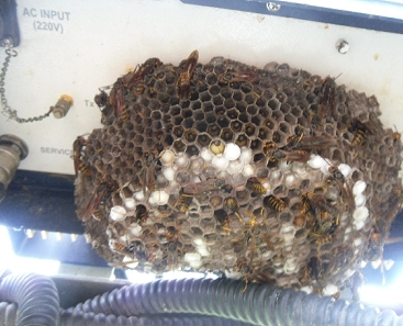 집안(근처)에 벌집이 생겼을 때 퇴치법 ▪ 벌떼는 도시나 시골 바위 밑이나 건물의 처마 밑 등을 가리지 않고 자신들이 비와 햇볕을 피하고 으슥한 곳이면 여건을 가리지 않고 집을 지음 ▪ 벌은 주광성으로서 낮에는 활동하고 밤에는 귀소 본능에 의하여 벌집으로 돌아옴 ▪ 이러한 습성을 이용 해가 져서 약간 어두울 때 출입구를 향하여 살충제를 1~2분 뿌려주면 약 5분 후 모든 벌들을 박멸 ▪ 벌집을 향하여 모래, 물을 뿌리는 행위는 벌집을 제거할 수도 없고 상당히 위험한 행위임