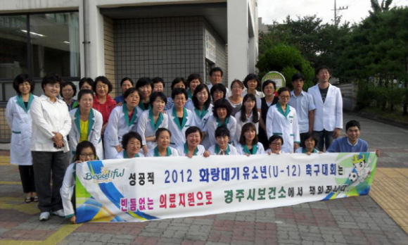 경주시 보건소는 8일, "2012화랑대기 축국대회 의료지원 발대식을 가졌다. 2012화랑대기 전국초등학교 축구대회 (186개교 455개팀 참가) 의료지원 종사자 508명에 대한 사전 교육과 시민운동장 등 29개 축구장에 의사, 간호사, 구급차를 배치 의료지원에 대한 사전교육과 환자 발생 시 응급치료 및 인근 병원 후송 등, 보다 체계적이고 완벽한 의료지원에 만전을 다할 예정이다.