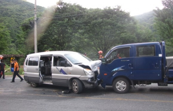 8월7일 오후 5시37분경 경주시 산내면 내일리 도로상에서 스타렉스와 포터 차량이 충돌하는 사고가 발생했다.