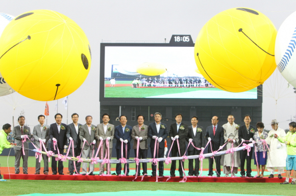 이날 경기에 앞서 박승호 포항시장을 비롯해 이병석 국회부의장, 이칠구 포항시의회의장, 김관용 경상북도지사 등이 참석한 가운데 야구장 정문앞에 설치된 Dream Wave 분수대에서 야구장 개장을 축하하는 제막식을 가졌다.