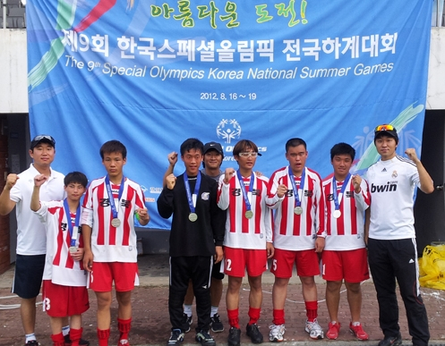 주말에 제9회 한국 스페셜올림픽 전국대회가 경산에서 개최되었습니다. 스페셜올림픽은 지적장애인들의 잔치로서 전국16개 시도에서 참가한 1,200여명의 선수들이 육상, 수영, 축구, 골프, 탁구, 농구, 배드민턴, 보체 등 8개 종목에서 기량을 겨루었습니다.
