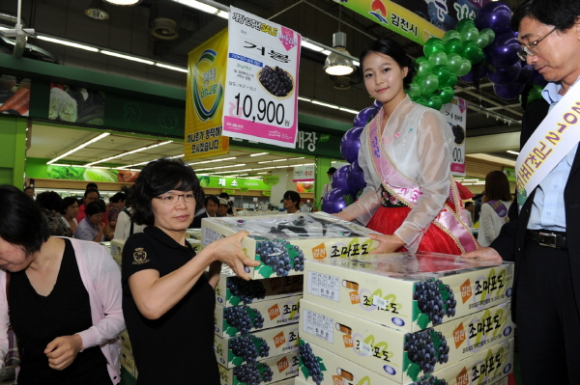 이번 행사는 이달 14일부터 21일 까지 수도권 5개 점포를 포함한 전국 13개 점포에서 개최됐으며, 거봉(2kg) 43만 박스, 캠벨(5kg) 25만 박스 등 82억원 가량을 판매하는 큰 성과를 올렸다. 아울러 김천포도에 대한 브랜드 가치제고와 소비자 신뢰 확보는 물론 지역경제 활성화에도 많은 도움이 됐다는 평이다. |