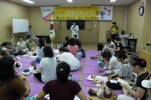 경주시보건소(소장 김미경)에서는 8월 22일부터 9주간 매주 수요일 오후 2시에 10개월 미만 아기랑 엄마가 함께 하는 제17기 한방육아교실 개강식을 35명이 참석한 가운데 보건소 체력단련실에서 가졌다.