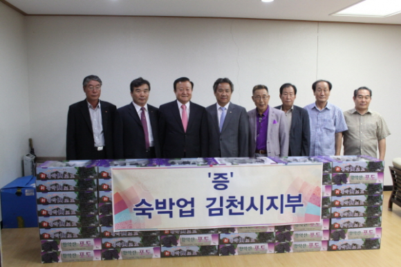 “김천지역 경제는 스포츠 덕분에 활기가 돕니다. 외지에서 수천 명이 김천으로 몰려와 대회기간 내내 숙박업소, 식당가, 상가 전체가 외지에서 온 손님들로 북적거립니다. 요즈음 한창 포도가 나오는 계절이고 해서 고마운 마음을 전달하러 왔습니다.” 홍종기 회장님의 말이다.