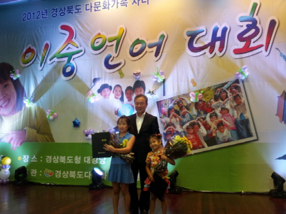 포항시 다문화가족지원센터(센터장 김완수)가 8월 30일 경상북도청 대강당에서 개최된‘2012 경상북도 다문화가족 자녀 이중언어 대회’에서 최우수상과 어울림상을 수상하는 영예를 안았다.