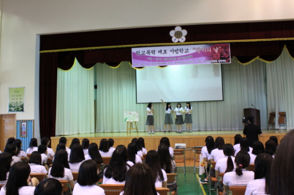 이 날 오전8시50분에는 학교 체육관에서, 학생들이 학급별로 제작한 ‘학교폭력 근절 포스터’ 제작 발표회를 가졌다.