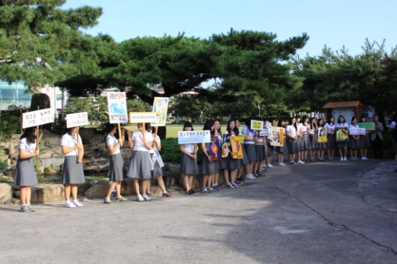 경주여자정보고등학교는 지난 6월 27일 경주지청에서 지정한 ‘학교폭력 제로 시범학교’로 이번 행사는 신학기를 맞은 학생들이 밝고 새로운 마음으로 학교생활에 임하고, ‘폭력 없는 아름다운 학교’를 만들자는 마음을 가지도록 하는데 의의를 두었다.
