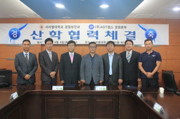 서라벌대학교(총장 김재홍) 경찰보안과는 세계 1위 보안 전문기업인 (주)ADT캡스와 지난 4일 서라벌대학교 본관 영상회의실에서 ‘산학협력 협약’을 체결했다.