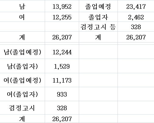 참고사항) 2012학년도 수능시험 원수접수 현황