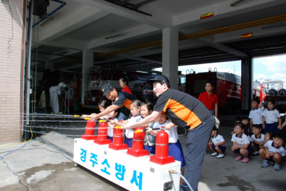 경주소방서(서장 김학태)는 11일 오전 근화유치원 교사 및 원생 140명을 대상으로 소방안전교육을 했다.