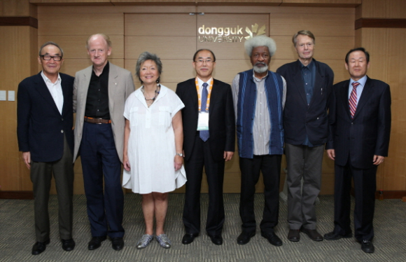 동국대학교 경주캠퍼스에서 지난 12일 오후 6시에 제78차 국제PEN대회 문학 포럼이 열렸다. 문학 포럼에서는 노벨문학상 수상자인 윌레 소잉카(1986년 수상)와 르 클레지오(2008년 수상)를 비롯하여 한국의 고은 시인과 국제PEN 클럽의 존 론스톤 소울 회장이 연사로 나서 ‘나의 삶 나의 문학’을 주제로 발표를 했다.