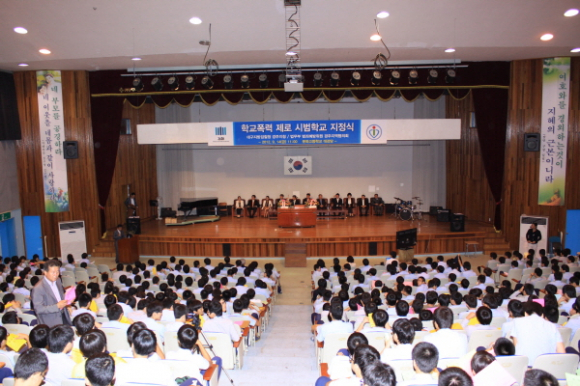 대구지방검찰청 경주지청(지청장 김봉석)은 9월 14일(금) 11시 문화고등학교(학교장 김승환) 대강당에서 백수근 범죄예방위원회 경주협의회 회장, 학교운영위원장 등이 참석한 가운데,『학교폭력 제로 시범학교』지정식을 개최했다. 이 행사는 ① ‘학교폭력 캠페인 송’ 뮤직비디오 시청, ② 학교장 환영 인사, 지청장 대회사, ③ 학교폭력 근절 결의문 낭독, ④ 현판식 순서로 진행됐다.