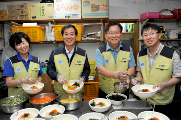 한수원 월성원자력본부의 무료급식소 ‘밥퍼 봉사’가 8년을 맞았다. 월성원자력 밥퍼봉사대는 "경주시 동천동 무료급식소 ‘이웃집’에서 2005년부터 한 달에 8회씩 무료급식 봉사"를 해왔다. 이청구 월성본부장 등 봉사대는 "15일 8주년을 기념해 밥퍼 봉사" 이외에 "급식소 주변 청소를 마치고 급식재료 등 후원물품"을 전달했다.