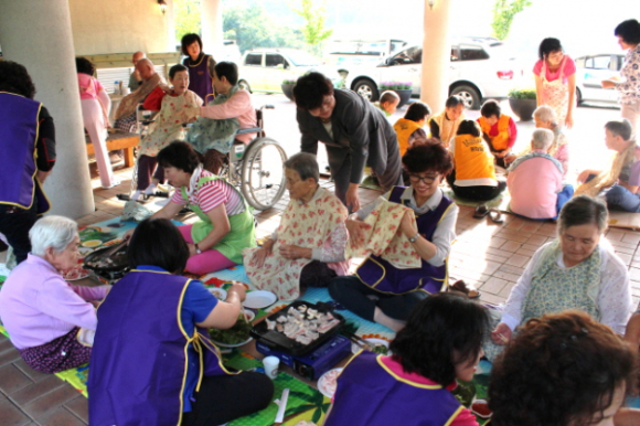 이 행사는 130여명의 참여로 많은 손길이 필요해 그동안 센터에서 각종봉사활동을 해주신 센터자원봉사자와 신라봉사회(회장 : 민자란)에서, 그날 필요한 과일과 떡, 과자 등 어르신들이 좋아하시는 음식을 준비했다.