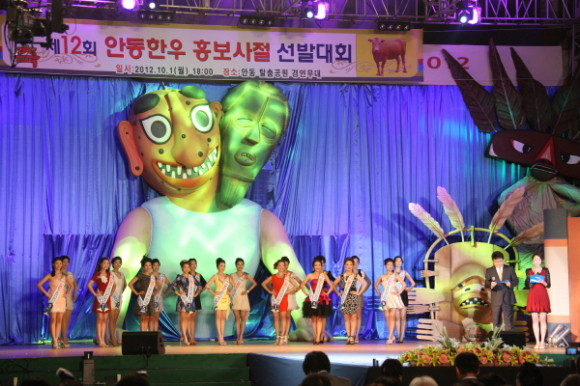 안동한우를 전국 소비자들에게 널리 알리고 소비자로부터 신뢰받는 브랜드로 거듭나고자 안동시가 주최하고 전국한우협회 안동시지부와 안동MBC가 주관하는「제12회 안동한우 홍보사절 선발대회」가 1일 탈춤축제장 경연무대에서 열렸다.