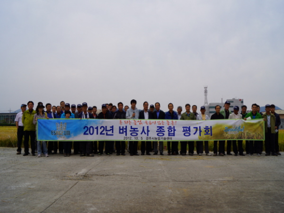 이날 평가회에서는 2012년 벼 작황분석과 문제점 및 개선방안에 관한 종합평가와 최근 각광받고 있는 무논점파 교육을 실시하고 현곡면 오류리 벼 품종 전시포, 무논점파 재배단지 및 밀양 국립식량과학원 기능성작물부를 견학하였으며, 고품질 품종과 기능성 품종에 대한 평가와 질의응답시간을 가졌다.