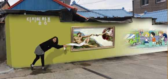 작품명: 디지털 창조(천지창조 패러디/트릭아트) |