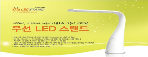 이 제품은 EZ LED STAND라는 상표로 출시되었는데, 언제 어디서나 이동이 자유롭고 무선으로 작동되는 LED 스탠드로서 2012년 한국디자인진흥원이 주최하는 Good-design 우수디자인상품에 선정 됬으며 품질 평가에서도 큰 호응을 받고 있다.