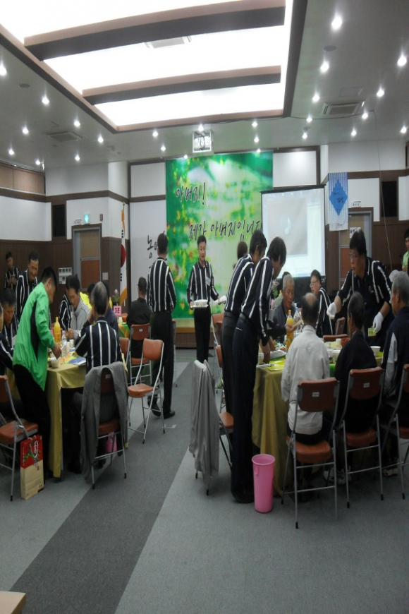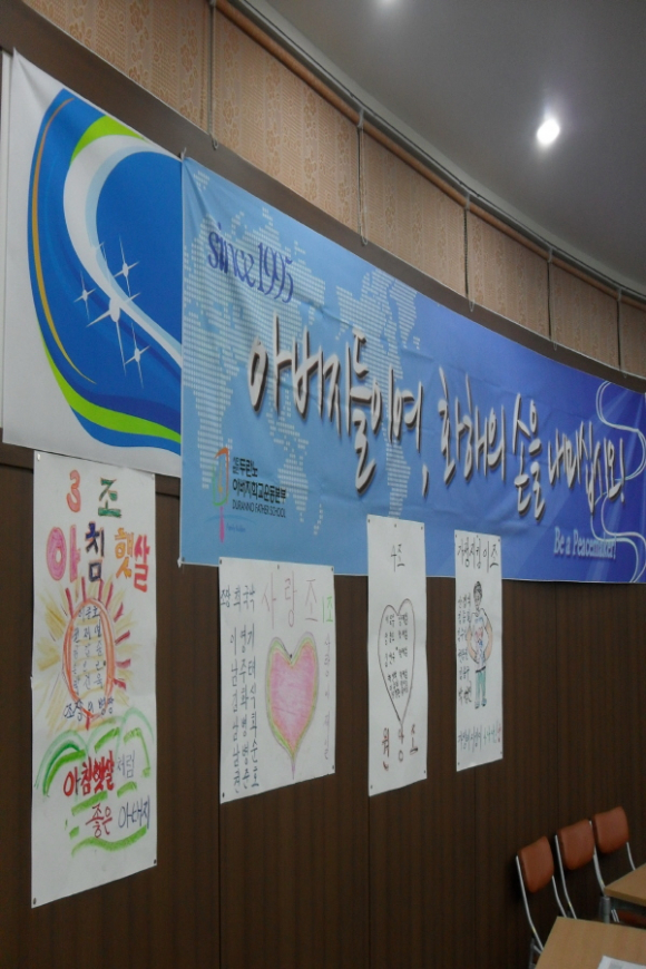 한국농어촌공사 예천지사(지사장 홍병선)에서 10월 한달간 토요일 저녁시간에 다문화가정 多행복을 위한 아버지 학교가 운영중이다. 10월 13일 2주차, 운영진들이 먼저 나와 아버지 학교의 참가자들을 맞이하기 위해 교재와 음향시설 등을 체크하고 있었다.