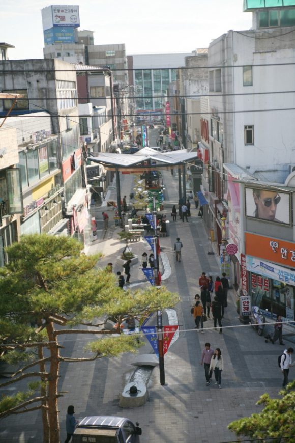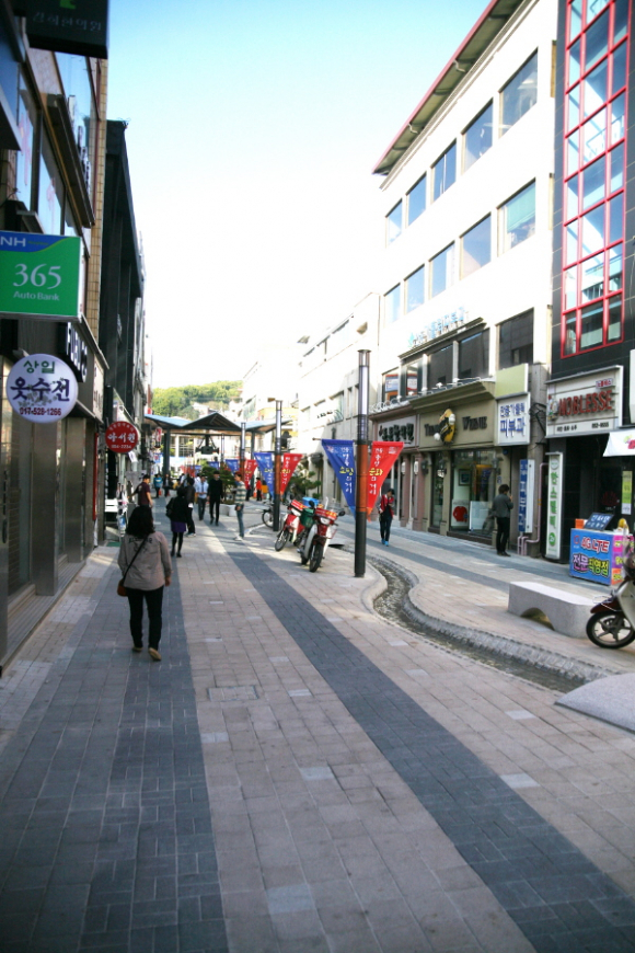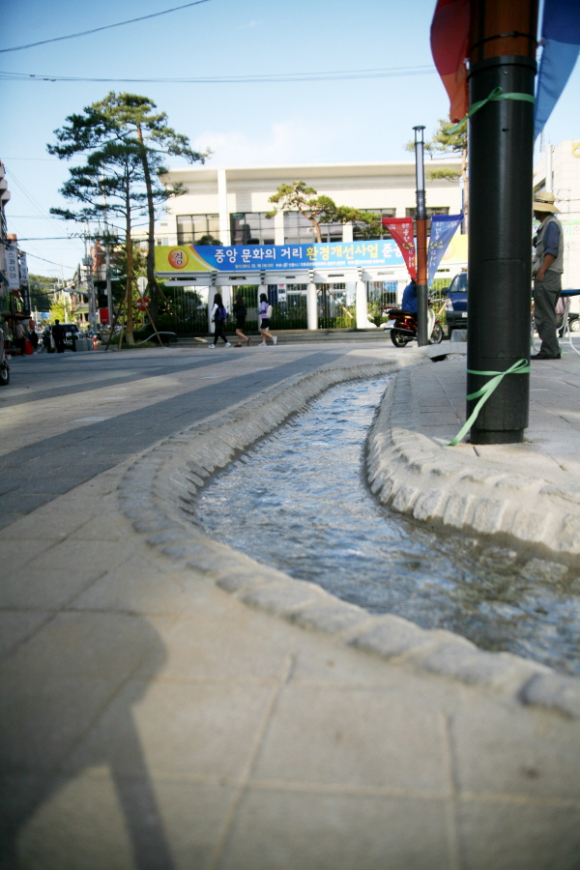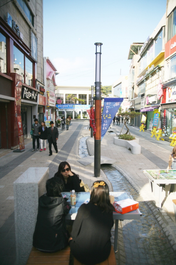 중앙교차점에는 전통건축 양식의 갓 모양을 모티브로한 비가림 시설을 적용해 시민과 관광객이 편안하게 머물면서 즐기고 쇼핑할 수 있도록 조성했다.