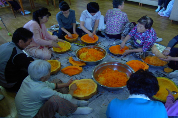 매년 호박이 익어가는 가을이면 어르신들이 가정에 계실 때 하시던 일을 기억할 수 있도록