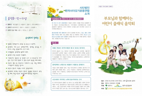 10월 27일(토) 개최하는 부모와 함께하는 어린이 클래식 음악회는 영주시와 아이낳기 좋은세상 영주시 운동본부가 주최하고 사)한자녀 더갖기 운동연합 영주지회가 주관하여 10월 마무리하는 멋진 주말 사랑하는 자녀들에게 행복하고 즐거운 추억이 되리라 생각한다.
