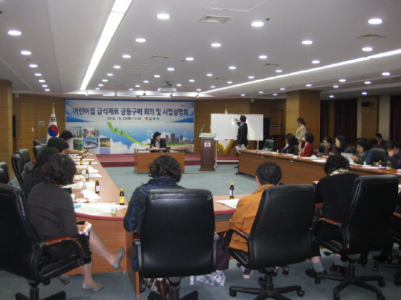 김천시(시장 박보생)는 25일 시청2층 회의실에서 급식재료 공동구매사업에 참여를 희망하는 28명의 어린이집원장이 참여한 가운데 어린이집 급식재료 공동구매사업 추진 관련 회의와 참여업체의 사업설명회를 가졌다. 이번 회의 및 사업설명회를 통해 4월부터 정부지원어린이집 20개소를 우선으로 추진해온 1차 사업에 대해 자체평가를 실시하고 문제점을 보완해 민간어린이집으로 참여를 확대할 계획이다.