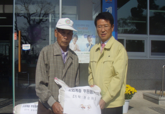 지난 26일 지역주민(덕촌리 143번지 권순자)의 후원으로 지역의 생활이 어려운 소외계층 10가구에 백미(20kg) 10포를 전달했다.