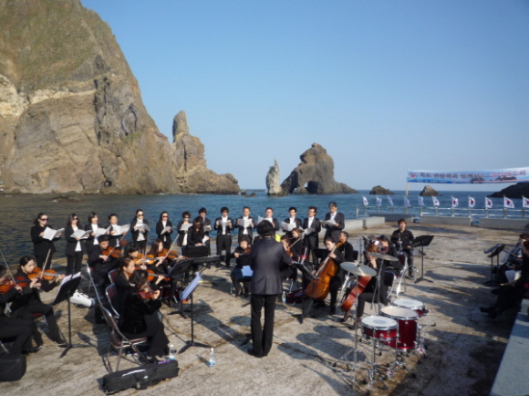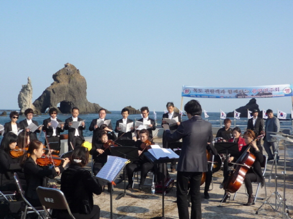 포항시립합창단과 포항아트챔버오케스트라는 26일 울릉군 울릉읍 독도리에서 독도를 찾은 400여명의 독도방문객과 함께 특별음악회를 가졌다.
