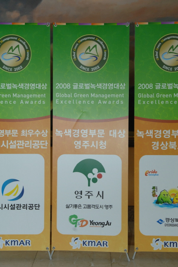 영주시는 10월 30일(화) 그랜드힐튼 서울 컨벤션센터에서 한국능률협회에서 주관하고 환경부, 중소기업청 등에서 후원하는 “녹색경영 대상”부문에서 2008년부터 2011년에 이어, 올해 영예의 “5년지속 大賞”을 수상했다.