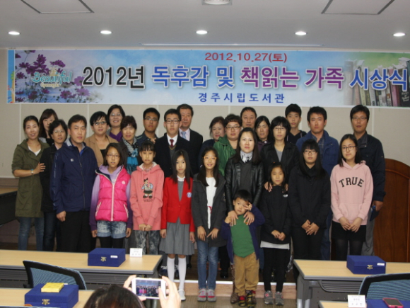 경주시립도서관(관장 이덕준)은 10월 27일 문화강좌실에서 2012년 독후감 공모대회 수상자 및 『책읽는 가족』을 시상하는 행사를 가졌다.