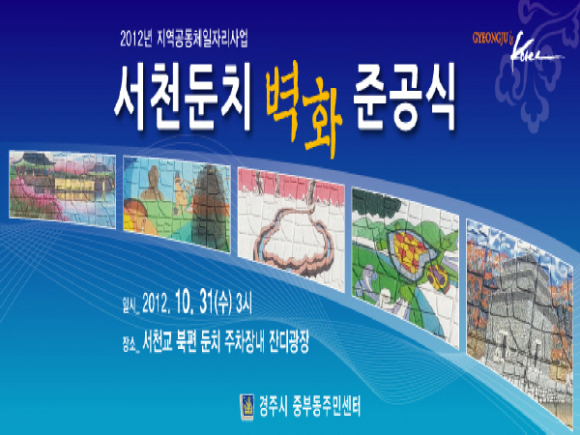 경주시 중부동주민센터는 “오는 31일(수), 오후 3시 서천교 북편 둔치주차장 내 잔디광장에서 “서천둔치 벽화” 준공식을 개최한다.“고 밝혔다.