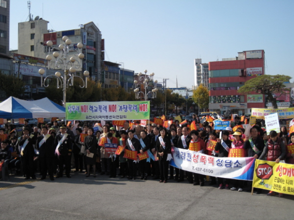 우리 사회에 아동과 여성에 대한 성폭력은 더 이상 용납될 수 없다. 성폭력 없는 김천을 만들어 안전하고 행복하게 살아갈 권리를 보장하라!! 힘이 없다는 이유만으로 온갖 폭력적인 상황 속에 무방비 상태로 노출되어 성폭력, 학교폭력, 가정폭력, 성매매 등 각종 범죄의 피해자가 나날이 늘어나고 있다. 정보와 기술이 최첨단을 달리고 있는 21세기 이 시점에서 사회적 약자인 아동, 여성 등에 대한 폭력이 심각해짐에도 불구하고 그에 비해 우리사회의 지속적인 관심이 부족한 실정이다.