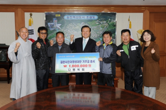 한편 김천시다문화가족지원센터(센터장 진오스님)의 자조모임인 “다행복회”(회장 이병근)에서 2009년, 2010년에 이어 올해에도 십시일반으로 100만원의 후원금을 모아 김천시인재양성재단에 기탁하며, 김천이 교육명품도시로 거듭나길 바란다고 말했다.