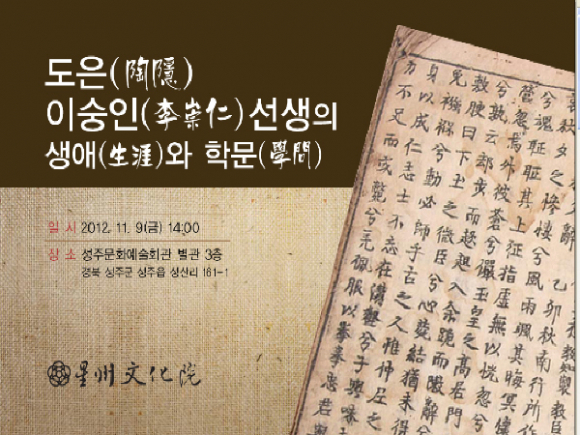 성주문화원(대표 이시웅)은 11월9일(금) 오후 2시 성주문화예술회관 별관 3층에서 “도은 이숭인 선생 학술대회”를 개최한다.