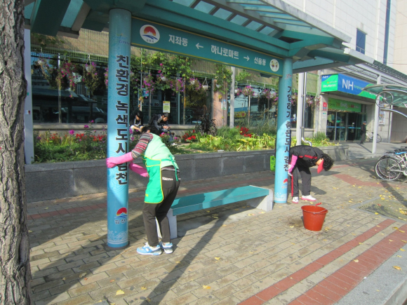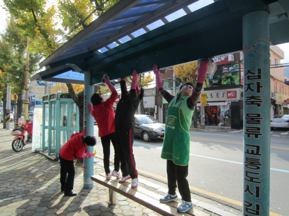 이들은 각자 청소도구를 지참해 각종 먼지들로 찌들어 있는 관내 버스승강장 등을 깨끗이 쓸고 구석구석 물청소를 해 쾌적한 시가지 환경을 조성해 우리 김천을 찾는 손님은 물론 버스 등 대중교통을 이용하는 시민들에게 깨끗한 도심의 이미지를 심어주었다.